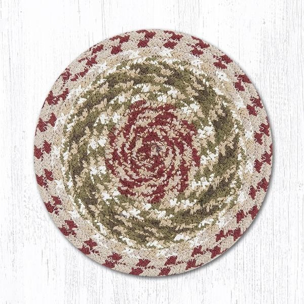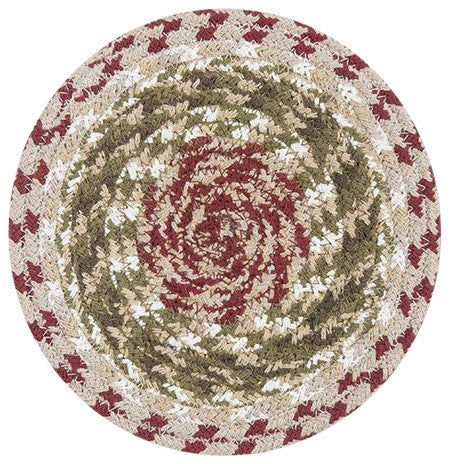 Olive/Burgundy/Gray Round Trivet, 8"x8"