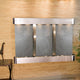 The Olympus Falls water fountain by Adagio Water Features is a beautiful three panel water wall that comes in slate, marble, mirror, or FeatherStone. This wall water fountain is self-contained allowing you to place it anywhere there is a standard 110V outlet without needing a water source. Just pour water into your tray and the pump will cycle it through. Enjoy the calming effects of a water fountain in your home today.75" L x 54" H x 6" D, easy to hang, complete with colored instructions and hardware for hanging on a sheetrock wall. Hanging Weight 180 lbs.This unit includes: 6 halogen lights Polished river rocks 3 Electric pumps3-way pull chain that allows you to run just lights, just water, or lights and water. Welded plastic liner insures against leaking and unique water distribution unit system will not clog. 110V, 100W; one cord operates entire unit; 90 degree plug can be concealed behind water feature. Durable powder coat finish; Manufactured and assembled in the USA with a 1 year limited warranty. • This light-weight slate veneer known as FeatherStone is natural stone and therefore may differ in color and texture from the photos shown.