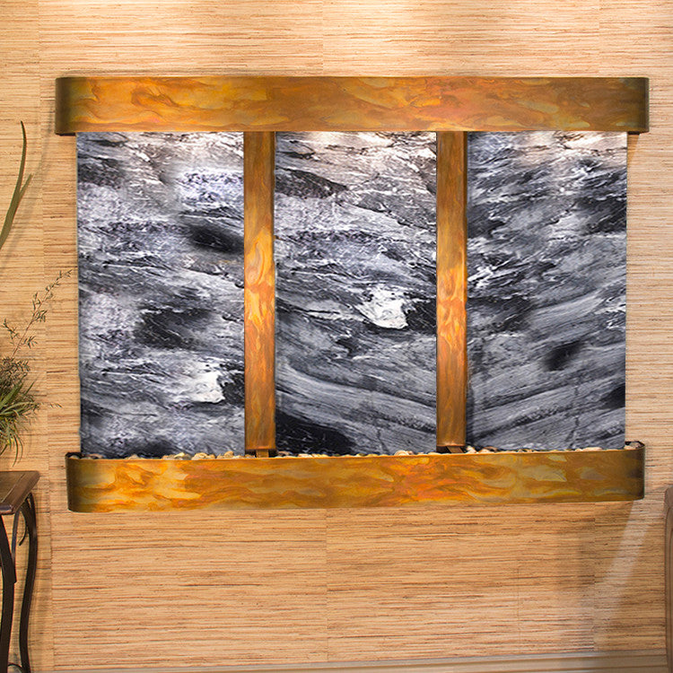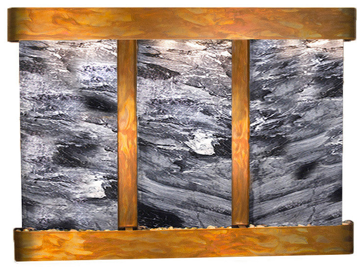 Olympus Falls Water Fountain, Black Spider Marble, Rustic Copper, Round