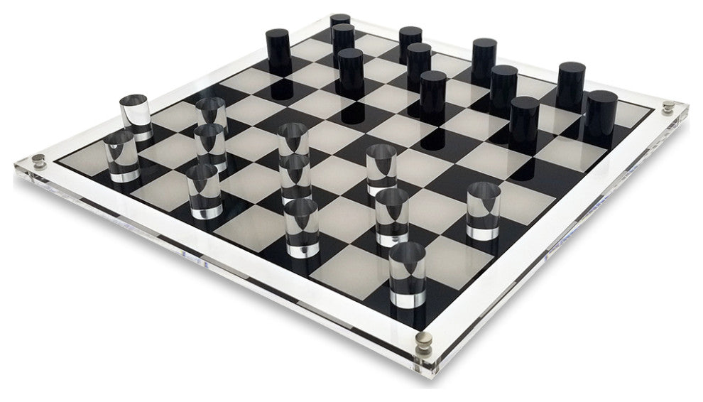 For the one who has it all, OnDisplay has created a limited edition handmade CrystaLuxe acrylic games. Our Checkers set is complete with 24 laser cut chunky game pieces and a matching acrylic white and black checkered playing board. Each set is hand crafted and polished to look like glass. The game board features 4 steel posts in the corners for an elegant, streamlined finish. The ultimate in luxury and a perfect match for any home decor. Measures 14" x 14" x 2".