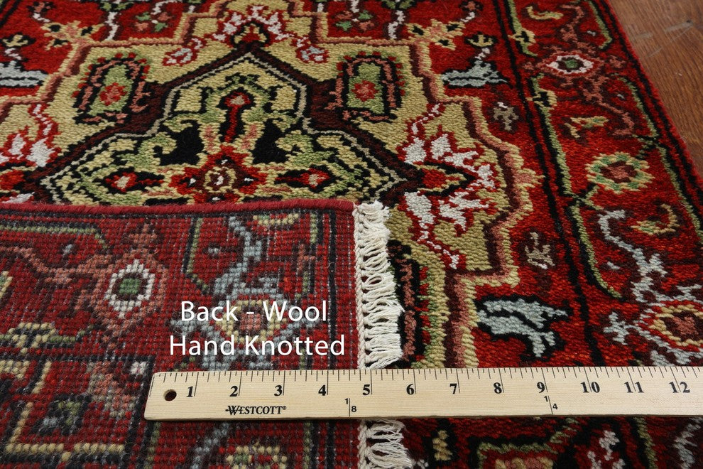 Heriz is situated in the northwestern part of Iran (Persia). Though the term covers Hand knotted rugs of numerous small villages in the area, the most beautiful Rugs were woven in Heriz itself For the last 100 years, the Heriz carpet designs have basically remained the same, with only small variations in color pallets and density of the design. The late 19th Century Rug (so called Serapis) was of fewer details and softer colors and with time designs became denser with added jewel tone color pallets. The revival of the carpet industry in the late 19th Century was based on the demand of the Western markets, with America in particular. Weavers in Heriz hand knotted were asked to make carpets inspired by the Fereghan Sarouks of higher cost for consumers of more limited budgets. Even though Sarouk carpets changed style later on, Heriz weavers stayed with the geometric pattern till now. However, Heriz was also a center of production of some of the best handmade carpets with both geometric and curvilinear floral patterns. A special heirloom wash produces the subtle color variations that give rugs their distinctive antique look.