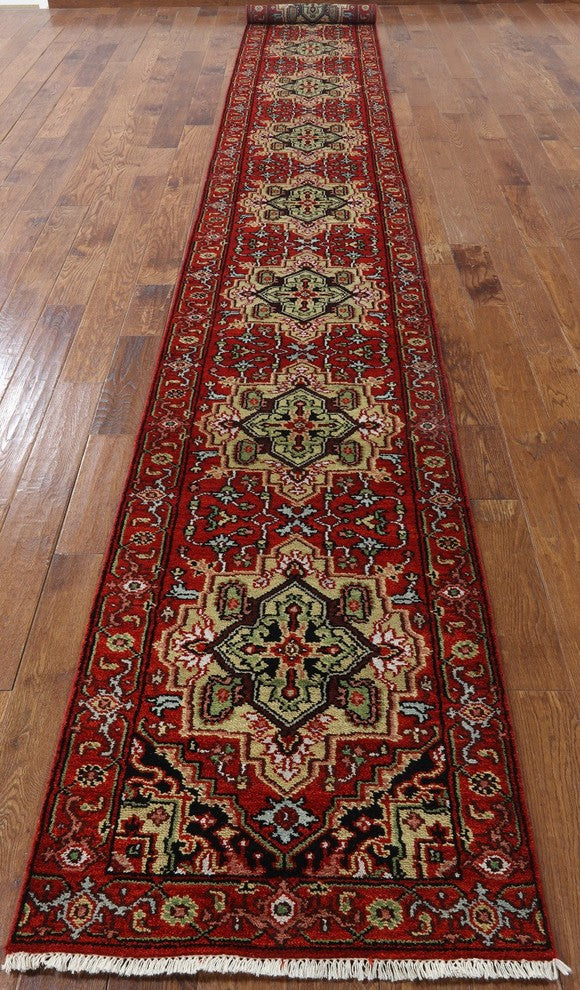 One of a Kind 3'x20' Oriental Heriz Serapi Runner Wool Hand Knotted Rug H9226