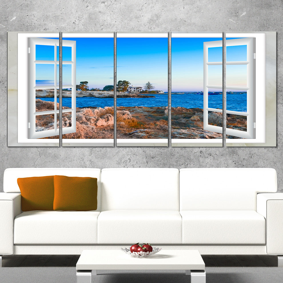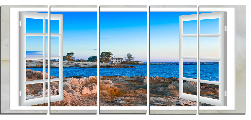 "Open Window To Blue Seashore" Landscape Wall Art Print, 5 Panels, 60"x28"