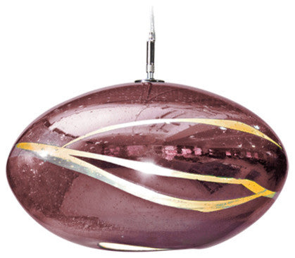 With its sensual, décor-enhancing silhouette, Orbit casts an ethereal glow on your surroundings. Featuring hand-blown glass with a mirror-like finish and a bold striated design, resulting in a light fixture that is unique as it is beautiful. Select from an array of decorator colors to illuminate your environment. This collection is created by Tempo Luxury Home in New York. The organic process of hand-blowing makes each pendant unique. 11"� W X 9"� H; 5"� canopy. 60w; 120v. Edison-style filament bulb included. Ships with 6 ft. of electrical cord.