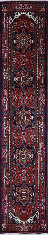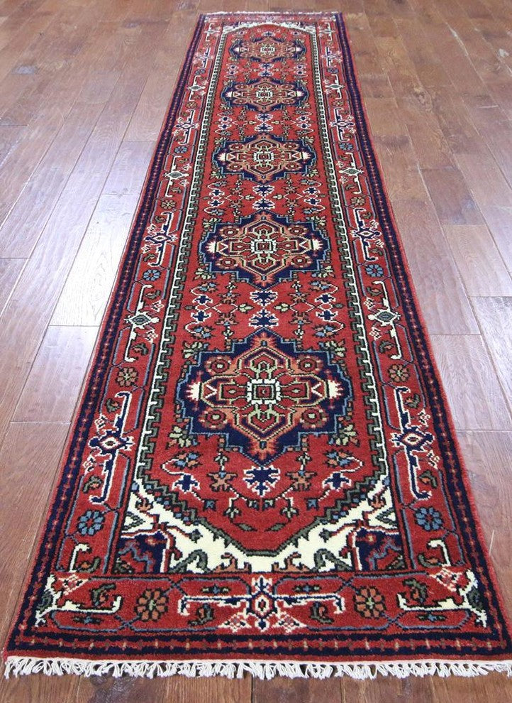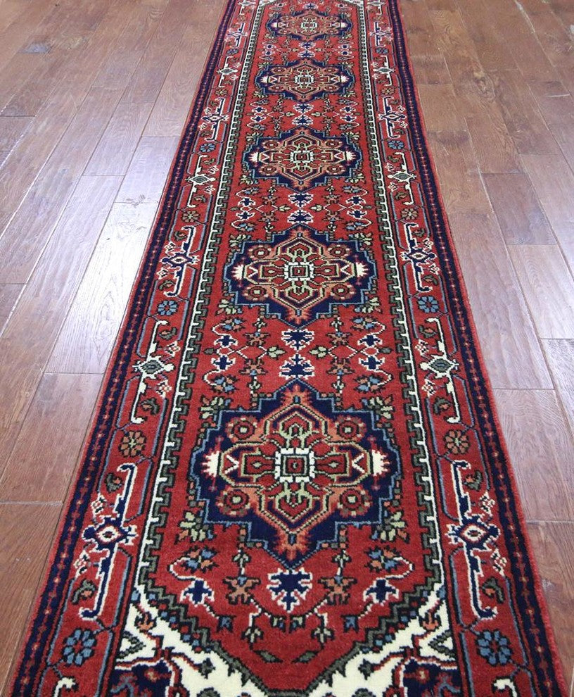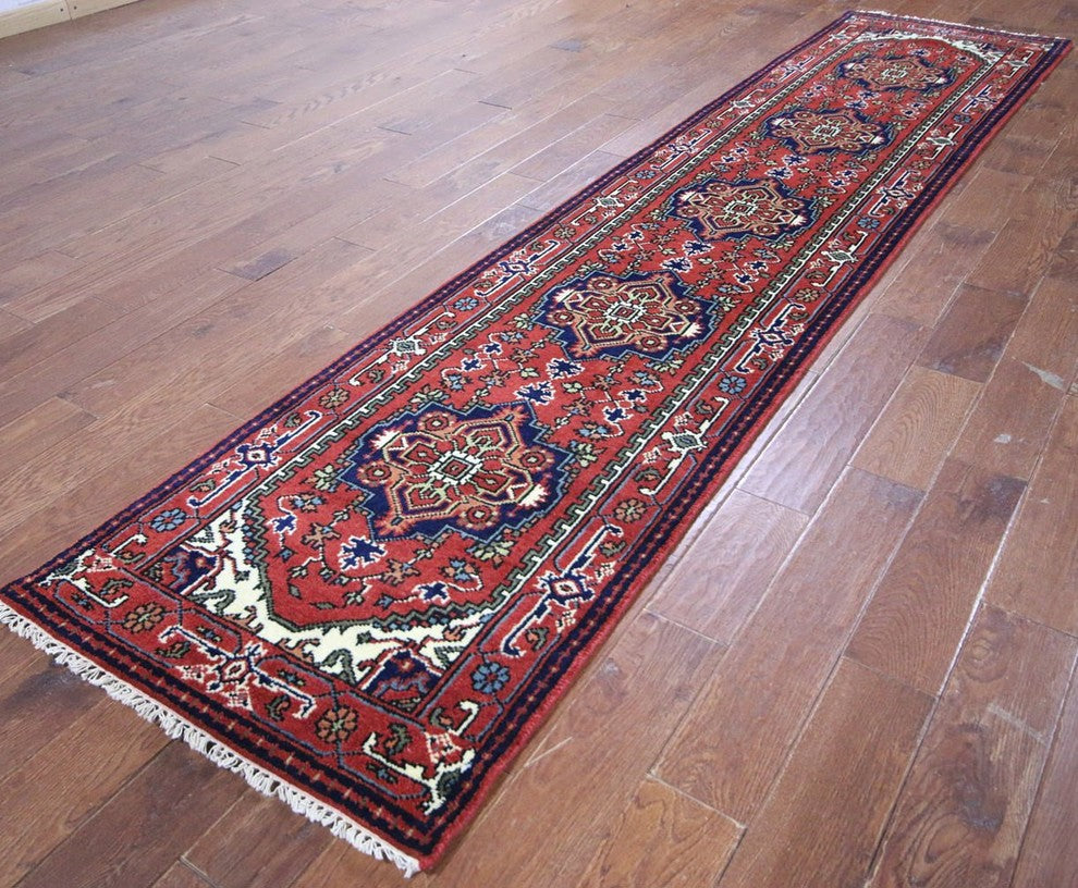 Oriental Red Heriz Serapi Hand-Knotted Wool Rug, 3'x12'