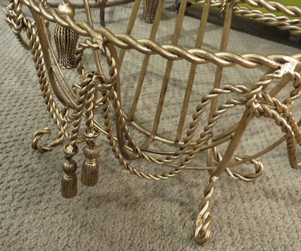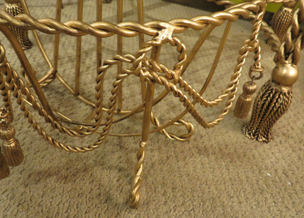 Ornate Gold Swag Tassel Wall Basket, Baroque Hanging Flower Metal