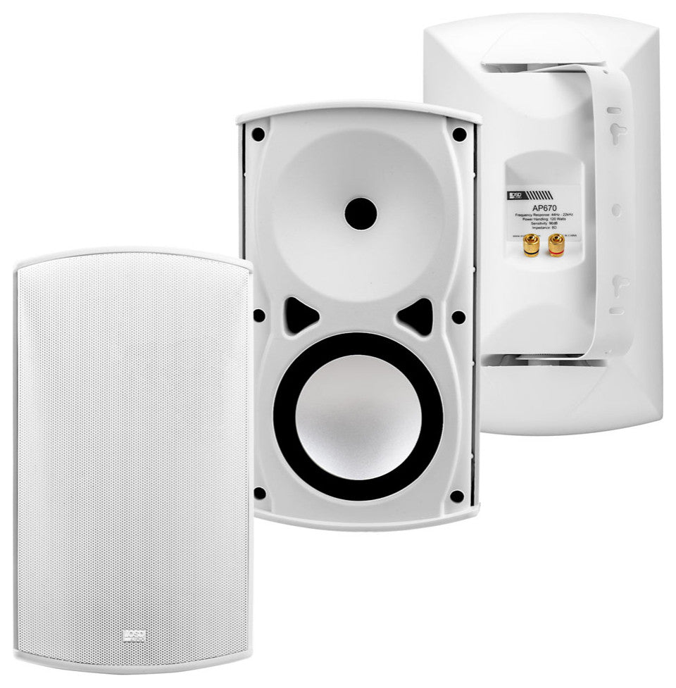 If you need to create a sleek, modern look while you''re providing family and friends with great outdoor audio, OSD Audio AP670 Outdoor Patio Speakers are the right way to go. These speakers, which come in black or white, come in pairs designed to resist all weather conditions and provide rich bass. With flexible mounting possibilities, the AP670 Outdoor Patio Speakers are great for pool areas, patios and decks. They come with swivel brackets so you can mount them vertically or horizontally.
