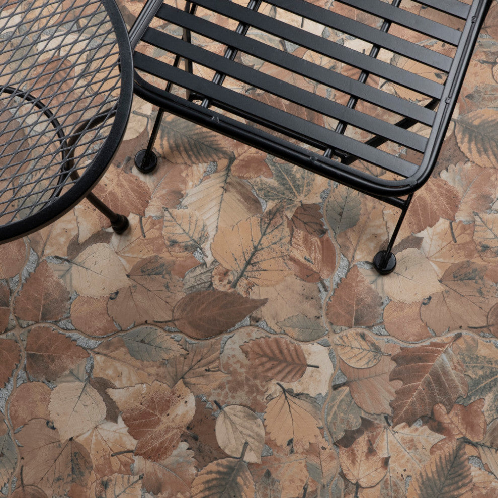 Our Otono Jet Ocre Porcelain Floor and Wall Tile offers a warming feel for any indoor or outdoor living space. Boasting a high durability rating, this tile can be used for areas of higher traffic. The leafy pattern on the tile provides an outdoorsy feel without making you leave the comfort of the indoors. With interlocking edges, these tiles will be pleasing to the eye by themselves or as an accent with our other tiles. Tile is the better choice for your space. This tile is made from natural ingredients, making it a healthy choice as it is free from allergens, VOCs, formaldehyde and PVC.