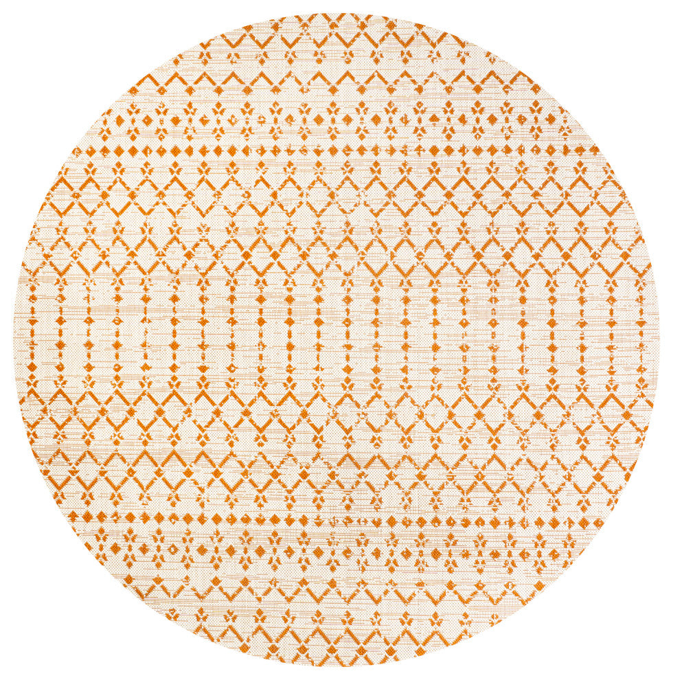 Ourika Moroccan Geometric Indoor/Outdoor Rug, Cream/Orange, 5' Round