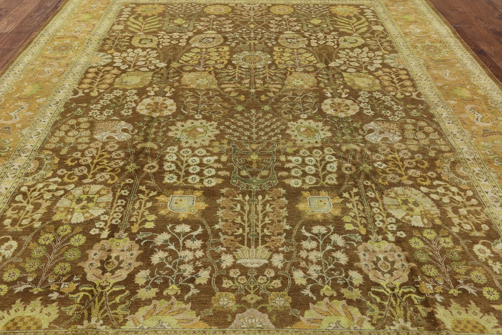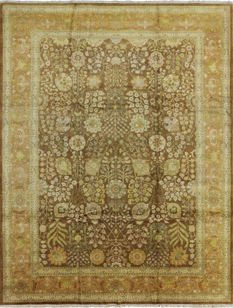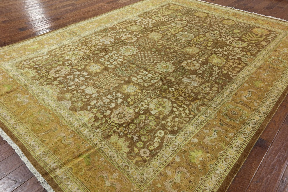 Oushak Brown Hand-Knotted Chobi Peshawar Quality Wool Rug, 9'x12'
