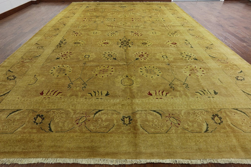 Oushak Handmade Oriental Hand-Knotted Ivory Wool Area Rug, Ivory, 12'x18'