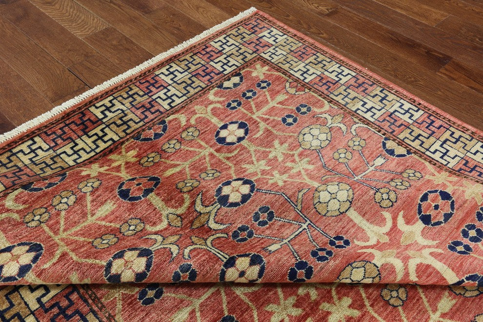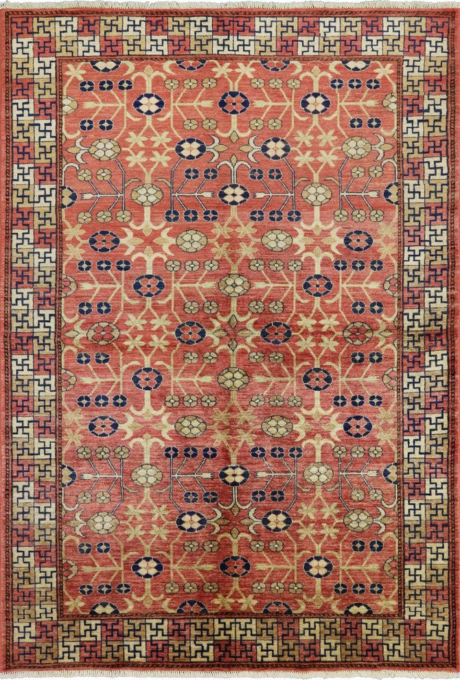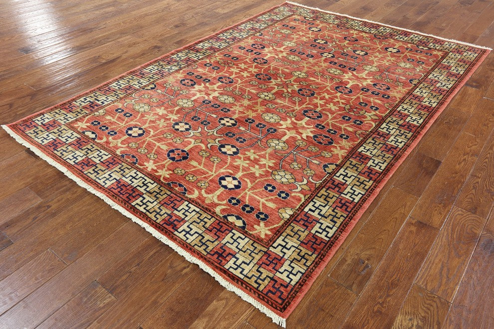Oushak Style Peshawar Pakistani Chobi Hand-Knotted Wool Rug, 6'x9'