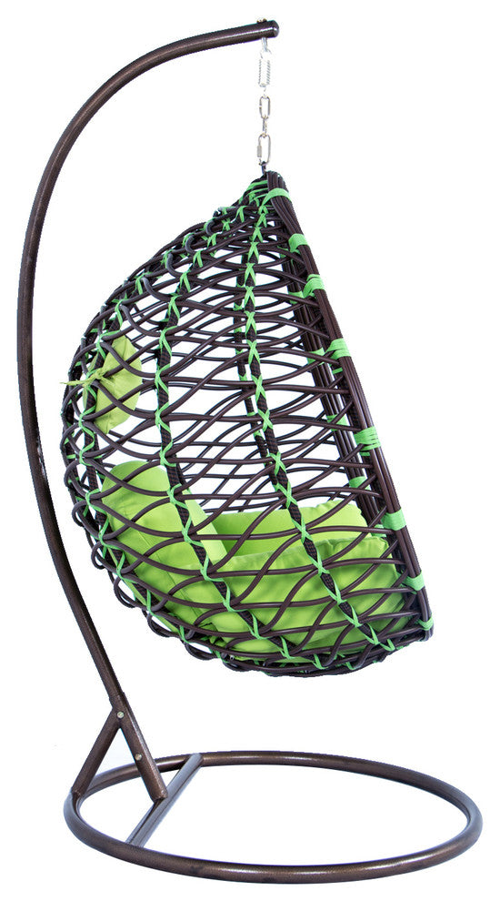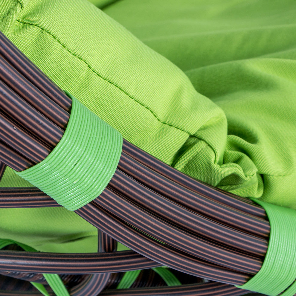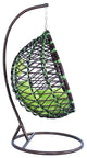 Outdoor Patio Hanging Hammock Wicker Egg Swing Lounge Chair with Green Cushion