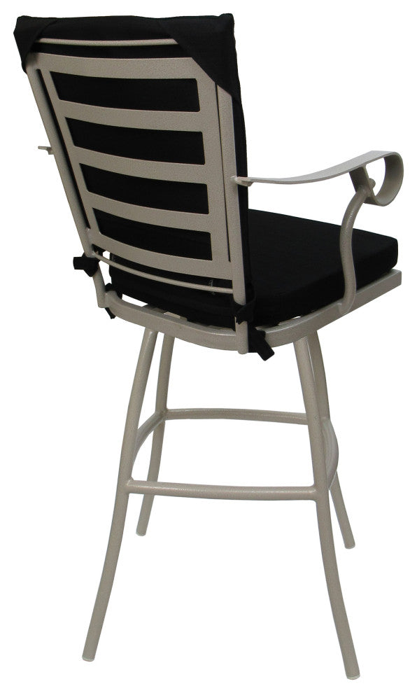 Outdoor Patio Swivel Bar Stool Jamey with Arms, Black - Beige, 26"