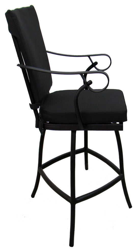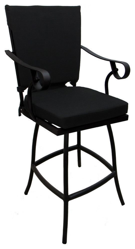 Outdoor Patio Swivel Bar Stool Jamey with Arms, Black - Black, 26"