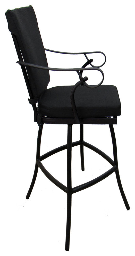Outdoor Patio Swivel Bar Stool Jamey with Arms, Black - Black, 30"