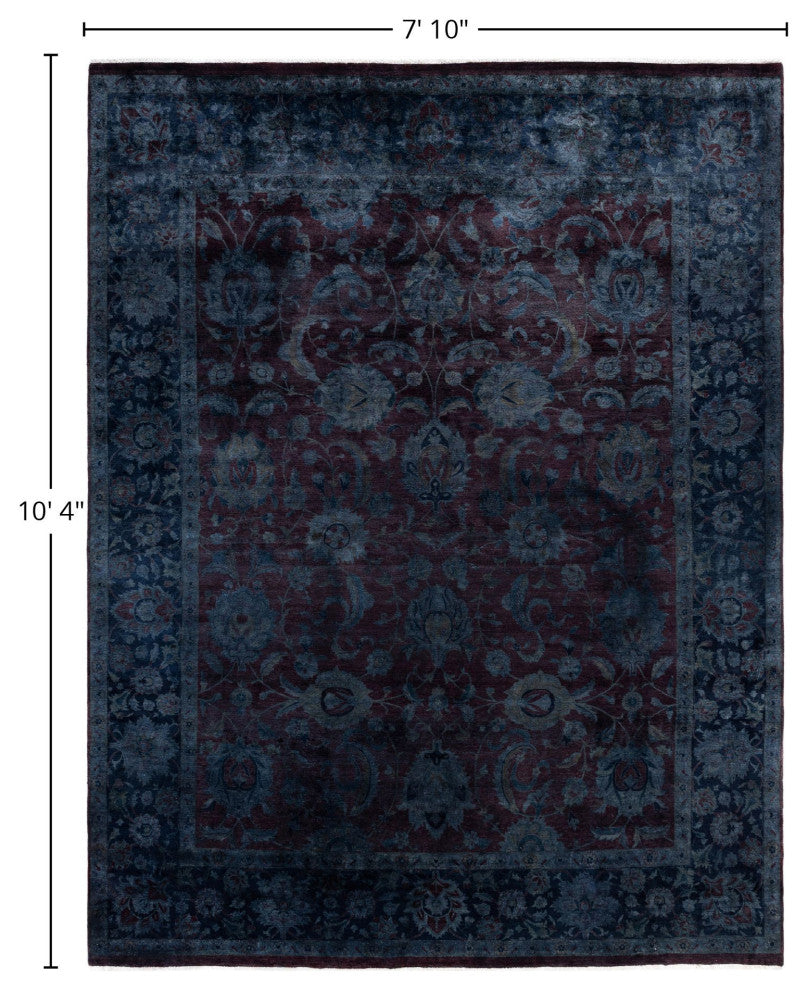 Overdyed area rugs blend vintage charm with bold, modern colors. This process involves taking distressed or faded traditional and antique rugs and saturating them with vibrant, monochromatic dye. This technique enhances the texture of the rugs while preserving the intricate patterns underneath. The result is a striking combination of old and new, with rich hues like deep blue, purple, or bright red. These rugs are perfect for eclectic and contemporary spaces, adding an artistic touch and serving as a dynamic focal point in any room.FeaturesHandcrafted by our team of experts in PakistanExceptional durability with 256 knots per inch constructionConstructed of 100% wool for a soft and cozy feelConvenient 7'' 10" x 10'' 4" dimensions offer the perfect balanced and inviting rug presenceNote that slight color variations may occur due to monitor differences. Embrace the individuality of each rug with minor variations in lengths, widths, and patternsDimensions:Area RugLength: 124 inchesWe believe that a beautiful room starts from the ground up. That is what inspired our founders to start selling hand-knotted rugs over 40 years ago. Since then, our passion for well-designed, impeccably hand-made rugs has never wavered.Experience - With more than 40 years in the rug business, our knowledge of premium hand-knotted rugs is exceptional.Quality - Our focus is on hand-knotted rugs and only hand-knotted rugs. At a minimum, it takes months to complete each rug by hand - that level of workmanship means our rugs are made to last.Variety - Our selection includes styles, sizes, and colors for every space and taste.