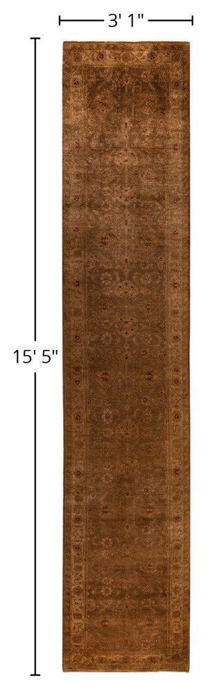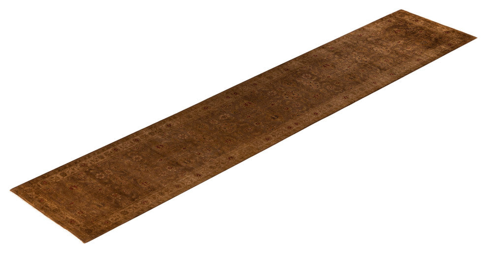 Overdyed One-of-a-Kind Hand-Knotted Area Rug Brown, 3' 1" x 15' 5"