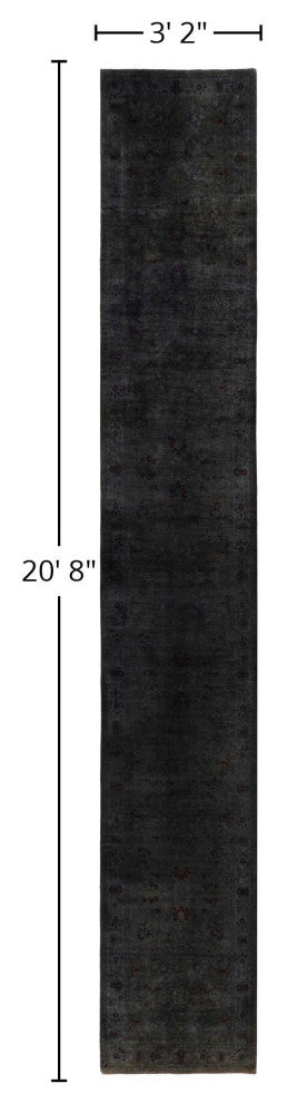 Overdyed One-of-a-Kind Hand-Knotted Area Rug Brown, 3' 2" x 20' 8"