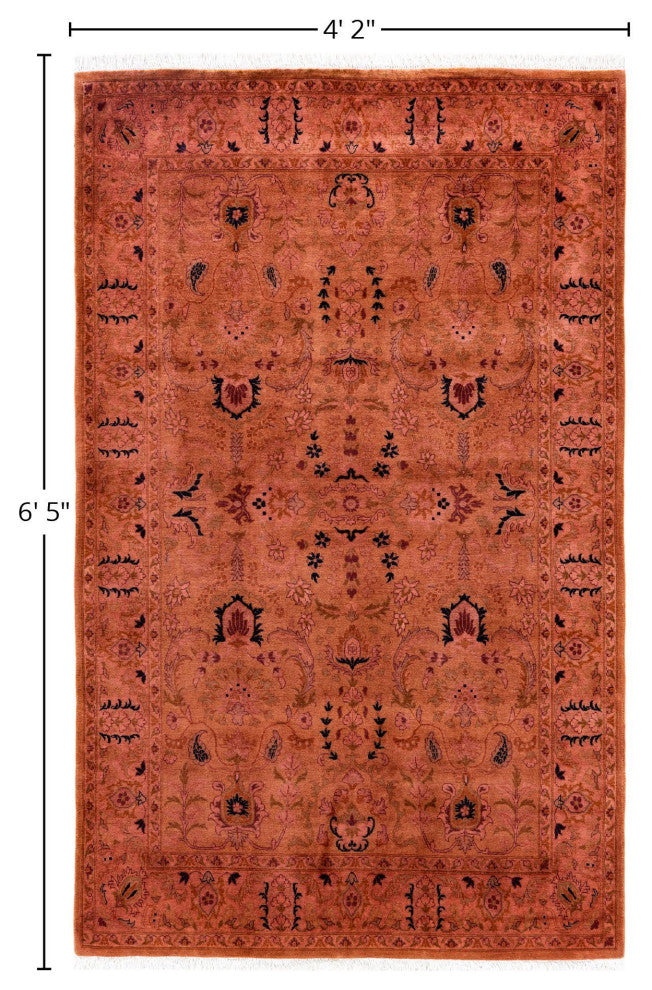 Overdyed area rugs blend vintage charm with bold, modern colors. This process involves taking distressed or faded traditional and antique rugs and saturating them with vibrant, monochromatic dye. This technique enhances the texture of the rugs while preserving the intricate patterns underneath. The result is a striking combination of old and new, with rich hues like deep blue, purple, or bright red. These rugs are perfect for eclectic and contemporary spaces, adding an artistic touch and serving as a dynamic focal point in any room.FeaturesHandcrafted by our team of experts in PakistanExceptional durability with 256 knots per inch constructionConstructed of 100% wool for a soft and cozy feelConvenient 4'' 2" x 6'' 5" dimensions offer the perfect balanced and inviting rug presenceNote that slight color variations may occur due to monitor differences. Embrace the individuality of each rug with minor variations in lengths, widths, and patternsDimensions:Area RugLength: 77 inchesWe believe that a beautiful room starts from the ground up. That is what inspired our founders to start selling hand-knotted rugs over 40 years ago. Since then, our passion for well-designed, impeccably hand-made rugs has never wavered.Experience - With more than 40 years in the rug business, our knowledge of premium hand-knotted rugs is exceptional.Quality - Our focus is on hand-knotted rugs and only hand-knotted rugs. At a minimum, it takes months to complete each rug by hand - that level of workmanship means our rugs are made to last.Variety - Our selection includes styles, sizes, and colors for every space and taste.