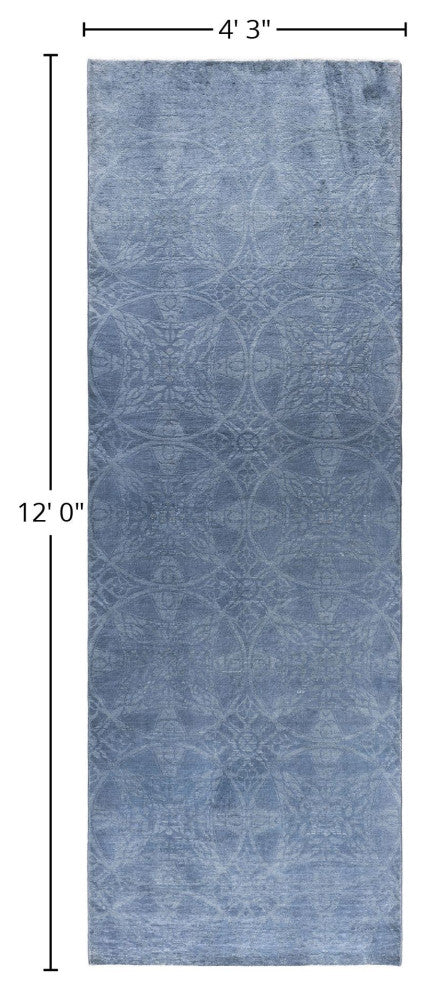 Overdyed area rugs blend vintage charm with bold, modern colors. This process involves taking distressed or faded traditional and antique rugs and saturating them with vibrant, monochromatic dye. This technique enhances the texture of the rugs while preserving the intricate patterns underneath. The result is a striking combination of old and new, with rich hues like deep blue, purple, or bright red. These rugs are perfect for eclectic and contemporary spaces, adding an artistic touch and serving as a dynamic focal point in any room.FeaturesHandcrafted by our team of experts in PakistanExceptional durability with 100 knots per inch constructionConstructed of 100% wool for a soft and cozy feelConvenient 4'' 3" x 12'' 0" dimensions offer the perfect balanced and inviting rug presenceNote that slight color variations may occur due to monitor differences. Embrace the individuality of each rug with minor variations in lengths, widths, and patternsDimensions:Area RugLength: 144 inchesWe believe that a beautiful room starts from the ground up. That is what inspired our founders to start selling hand-knotted rugs over 40 years ago. Since then, our passion for well-designed, impeccably hand-made rugs has never wavered.Experience - With more than 40 years in the rug business, our knowledge of premium hand-knotted rugs is exceptional.Quality - Our focus is on hand-knotted rugs and only hand-knotted rugs. At a minimum, it takes months to complete each rug by hand - that level of workmanship means our rugs are made to last.Variety - Our selection includes styles, sizes, and colors for every space and taste.