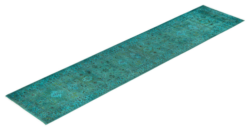 Overdyed One-of-a-Kind Hand-Knotted Area Rug Green, 2' 7" x 12' 2"