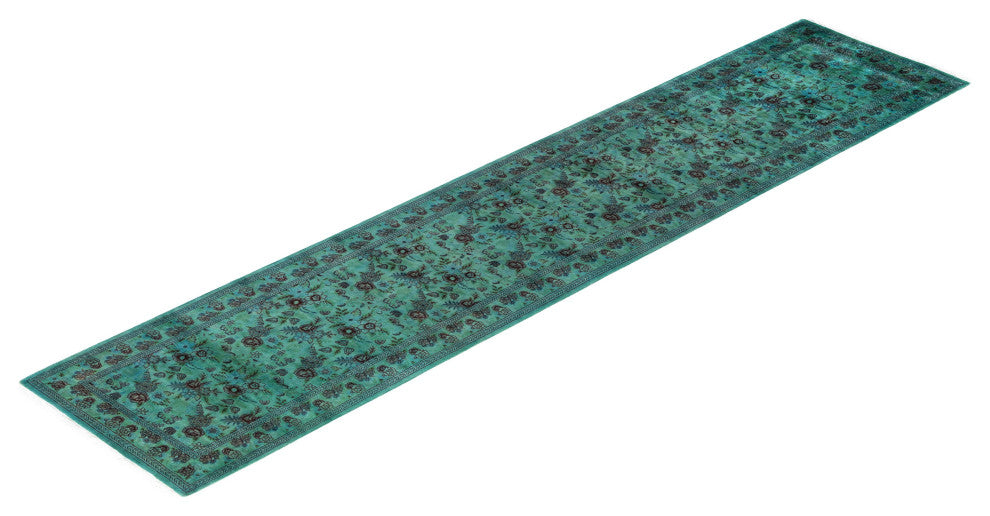 Overdyed One-of-a-Kind Hand-Knotted Area Rug Green, 2' 8" x 12' 1"