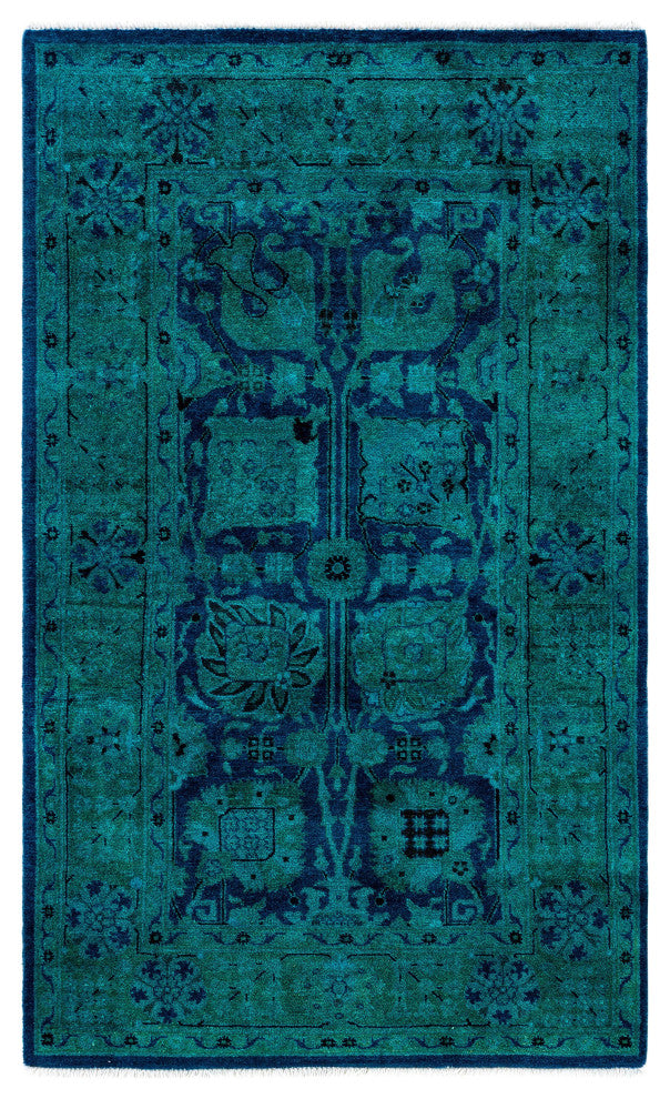 Overdyed area rugs blend vintage charm with bold, modern colors. This process involves taking distressed or faded traditional and antique rugs and saturating them with vibrant, monochromatic dye. This technique enhances the texture of the rugs while preserving the intricate patterns underneath. The result is a striking combination of old and new, with rich hues like deep blue, purple, or bright red. These rugs are perfect for eclectic and contemporary spaces, adding an artistic touch and serving as a dynamic focal point in any room.FeaturesHandcrafted by our team of experts in PakistanExceptional durability with 100 knots per inch constructionConstructed of 100% wool for a soft and cozy feelConvenient 3'' 1" x 5'' 2" dimensions offer the perfect balanced and inviting rug presenceNote that slight color variations may occur due to monitor differences. Embrace the individuality of each rug with minor variations in lengths, widths, and patternsDimensions:Area RugLength: 62 inchesWe believe that a beautiful room starts from the ground up. That is what inspired our founders to start selling hand-knotted rugs over 40 years ago. Since then, our passion for well-designed, impeccably hand-made rugs has never wavered.Experience - With more than 40 years in the rug business, our knowledge of premium hand-knotted rugs is exceptional.Quality - Our focus is on hand-knotted rugs and only hand-knotted rugs. At a minimum, it takes months to complete each rug by hand - that level of workmanship means our rugs are made to last.Variety - Our selection includes styles, sizes, and colors for every space and taste.