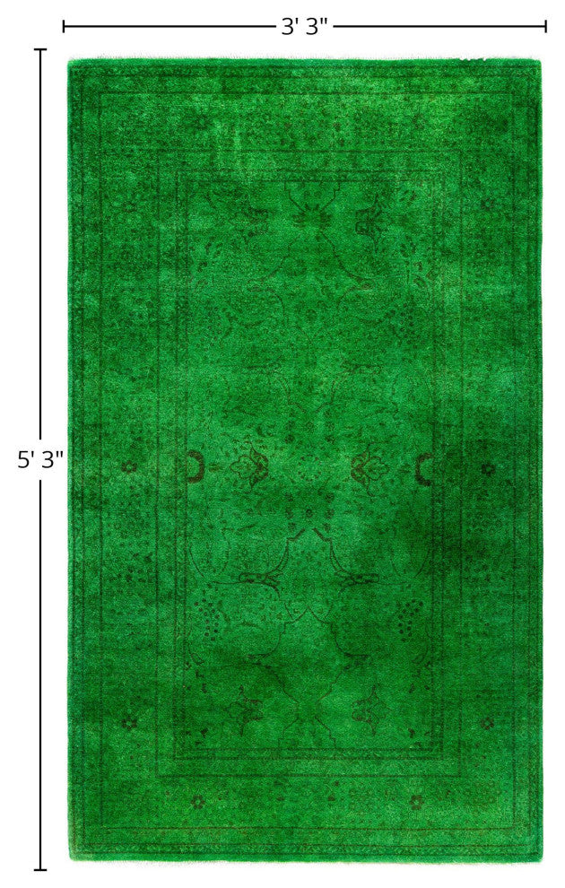 Overdyed One-of-a-Kind Hand-Knotted Area Rug Green, 3' 3" x 5' 3"
