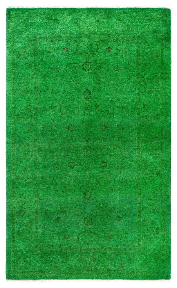 Overdyed One-of-a-Kind Hand-Knotted Area Rug Green, 3' 3" x 5' 3"