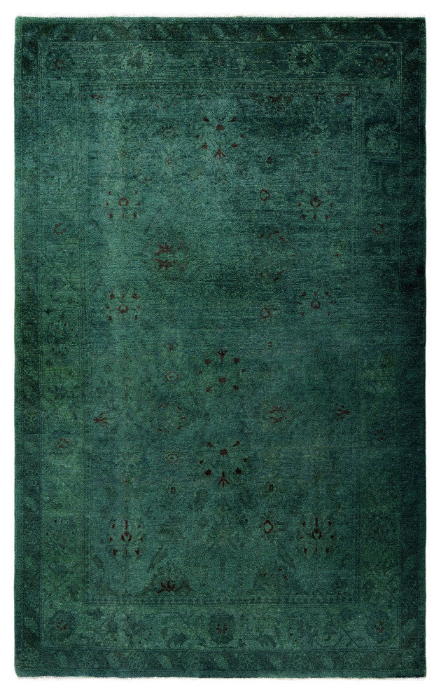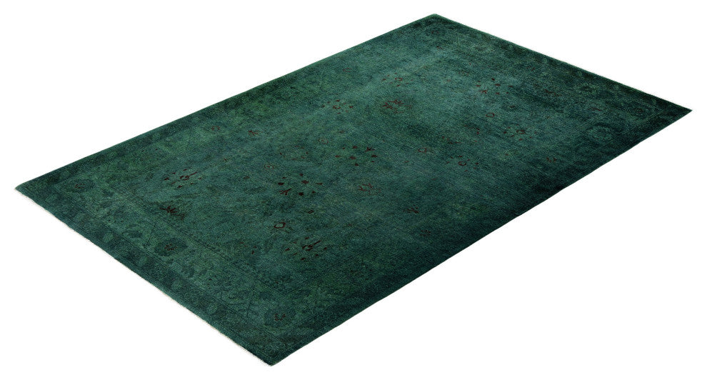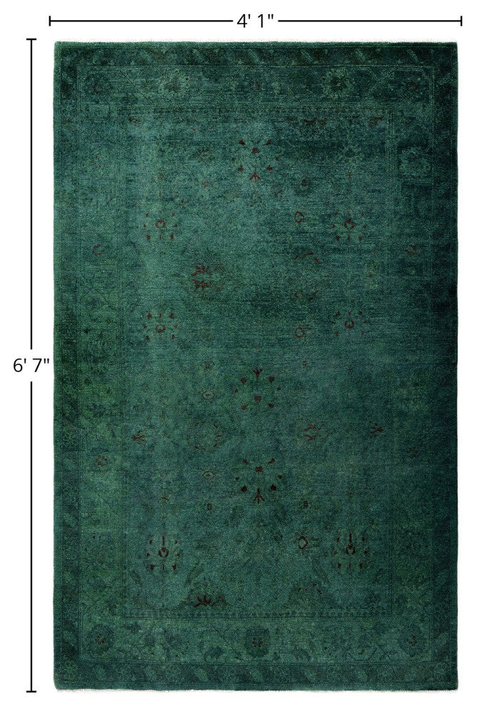 Overdyed One-of-a-Kind Hand-Knotted Area Rug Green, 4' 1" x 6' 7"