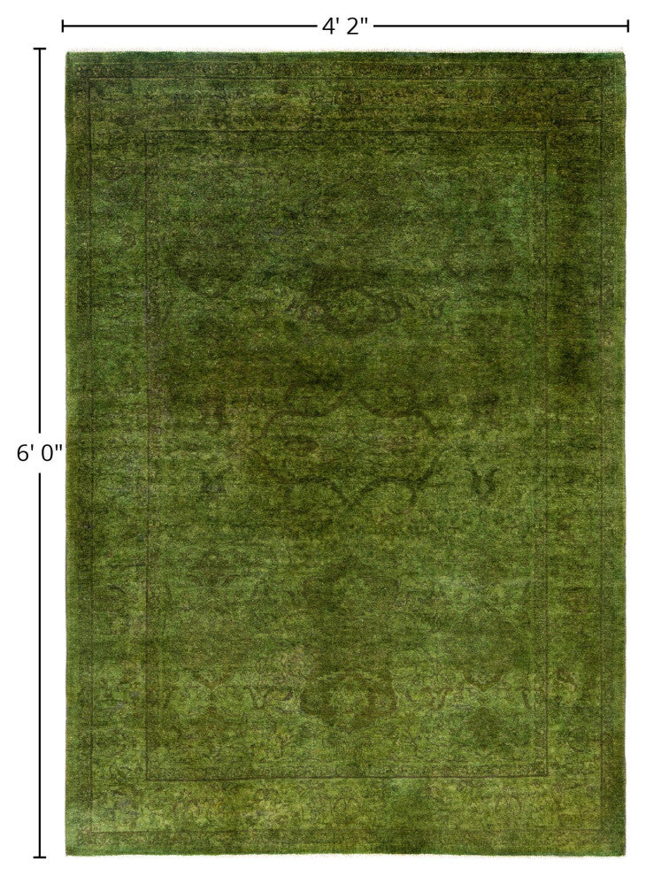 Overdyed One-of-a-Kind Hand-Knotted Area Rug Green, 4' 2" x 6' 0"