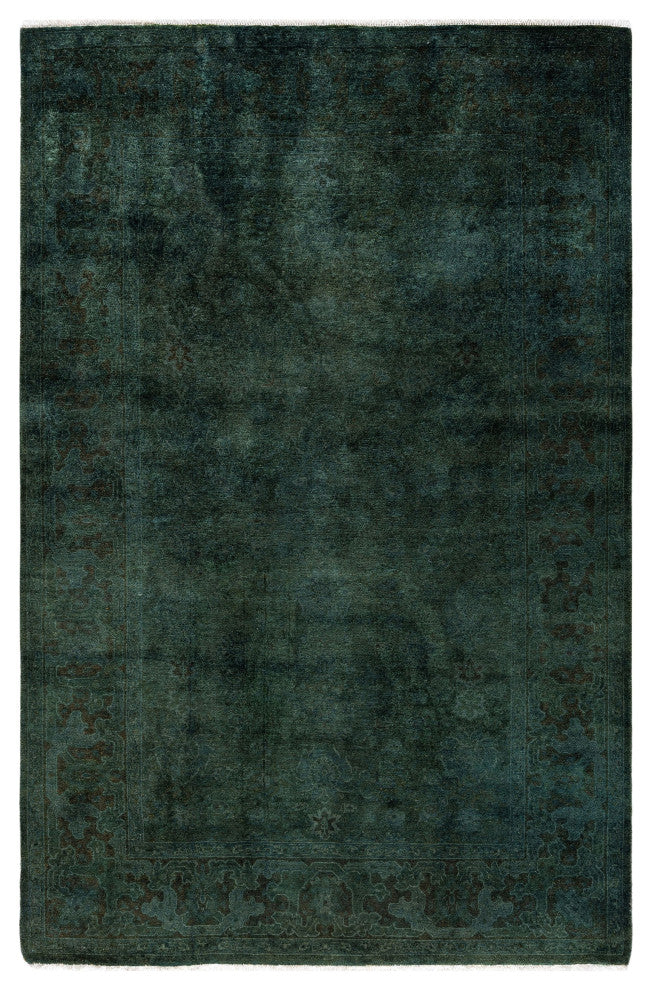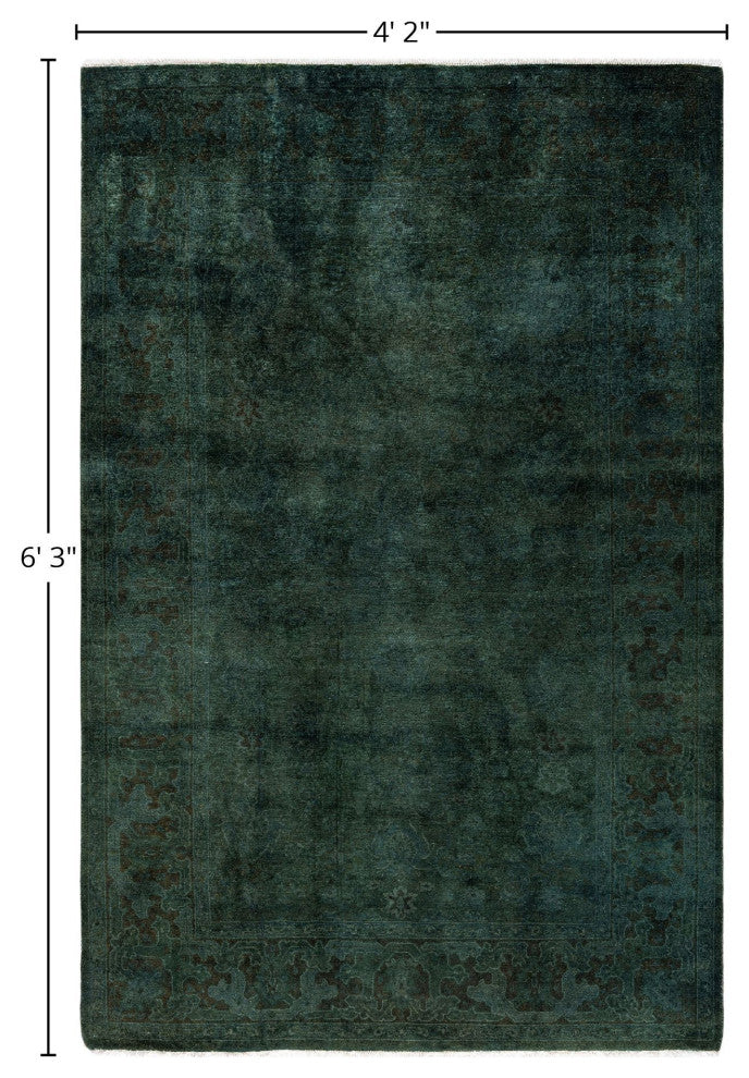 Overdyed One-of-a-Kind Hand-Knotted Area Rug Green, 4' 2" x 6' 3"
