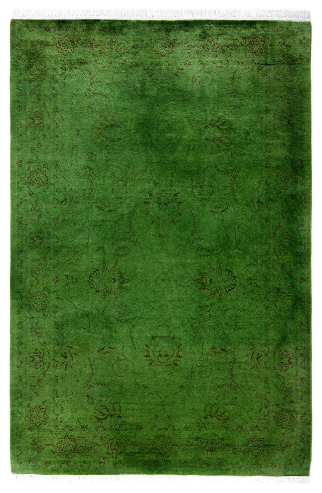 Overdyed One-of-a-Kind Hand-Knotted Area Rug Green, 4' 3" x 6' 4"
