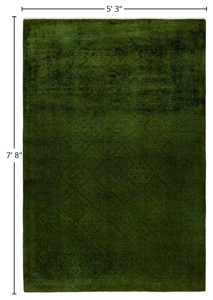 Overdyed One-of-a-Kind Hand-Knotted Area Rug Green, 5' 3" x 7' 8"