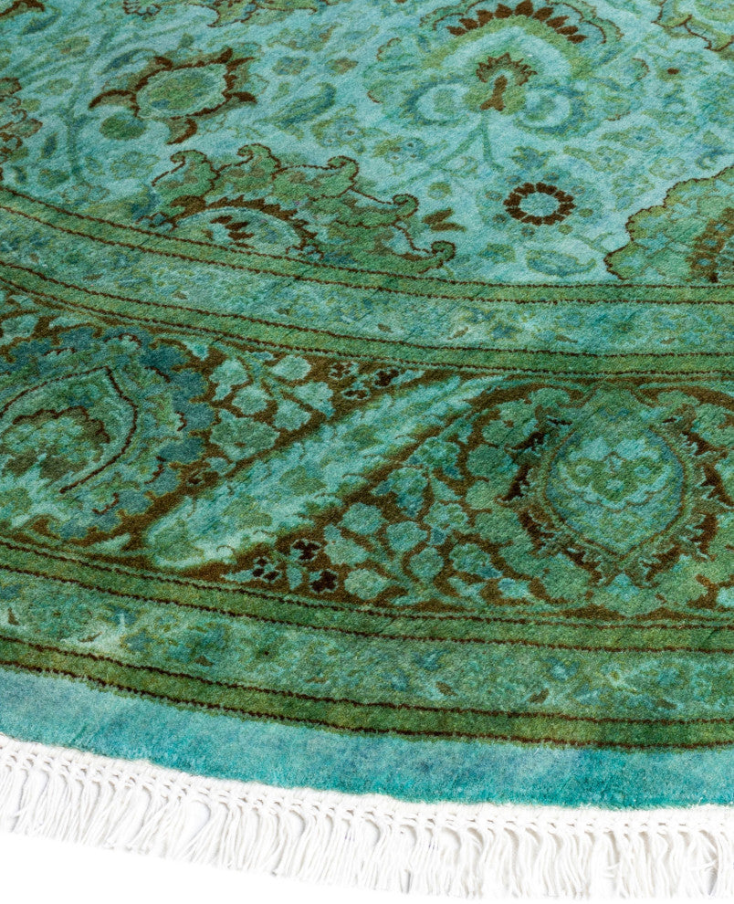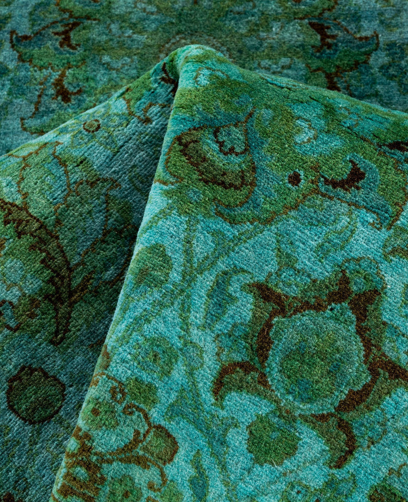 Overdyed area rugs blend vintage charm with bold, modern colors. This process involves taking distressed or faded traditional and antique rugs and saturating them with vibrant, monochromatic dye. This technique enhances the texture of the rugs while preserving the intricate patterns underneath. The result is a striking combination of old and new, with rich hues like deep blue, purple, or bright red. These rugs are perfect for eclectic and contemporary spaces, adding an artistic touch and serving as a dynamic focal point in any room.FeaturesHandcrafted by our team of experts in PakistanExceptional durability with 256 knots per inch constructionConstructed of 100% wool for a soft and cozy feelConvenient 7'' 1" x 7'' 1" dimensions offer the perfect balanced and inviting rug presenceNote that slight color variations may occur due to monitor differences. Embrace the individuality of each rug with minor variations in lengths, widths, and patternsDimensions:Area RugLength: 85 inchesWe believe that a beautiful room starts from the ground up. That is what inspired our founders to start selling hand-knotted rugs over 40 years ago. Since then, our passion for well-designed, impeccably hand-made rugs has never wavered.Experience - With more than 40 years in the rug business, our knowledge of premium hand-knotted rugs is exceptional.Quality - Our focus is on hand-knotted rugs and only hand-knotted rugs. At a minimum, it takes months to complete each rug by hand - that level of workmanship means our rugs are made to last.Variety - Our selection includes styles, sizes, and colors for every space and taste.
