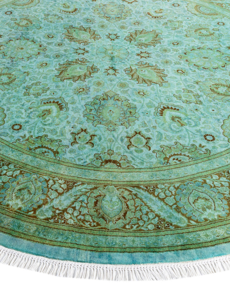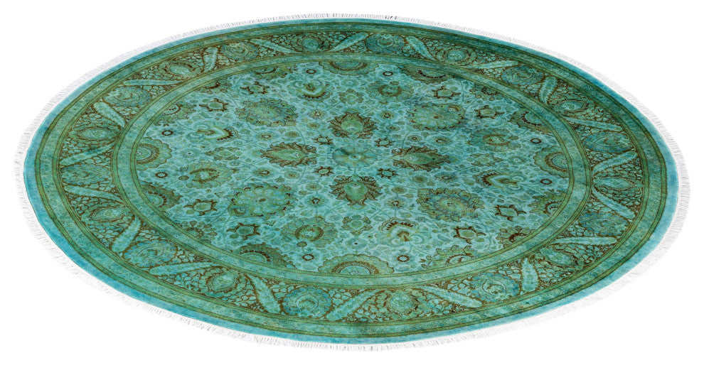 Overdyed One-of-a-Kind Hand-Knotted Area Rug Green, 7' 1" x 7' 1"