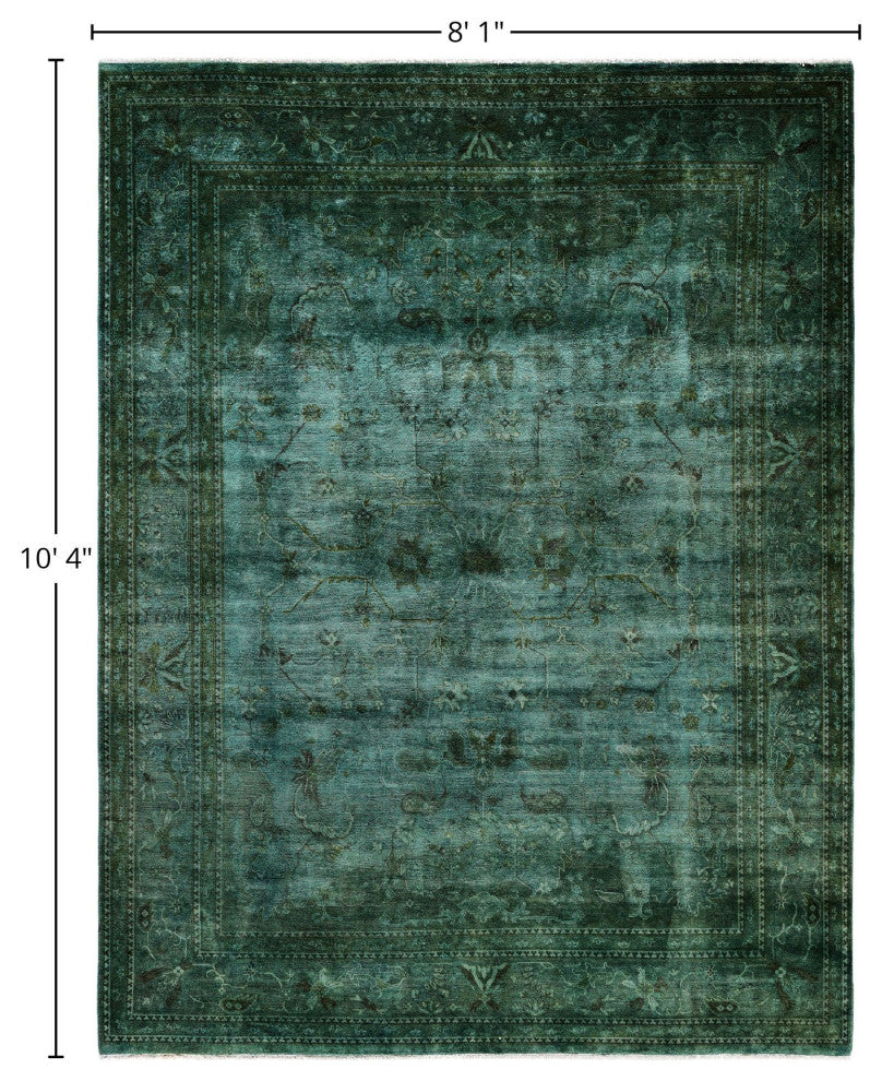 Overdyed One-of-a-Kind Hand-Knotted Area Rug Green, 8' 1" x 10' 4"