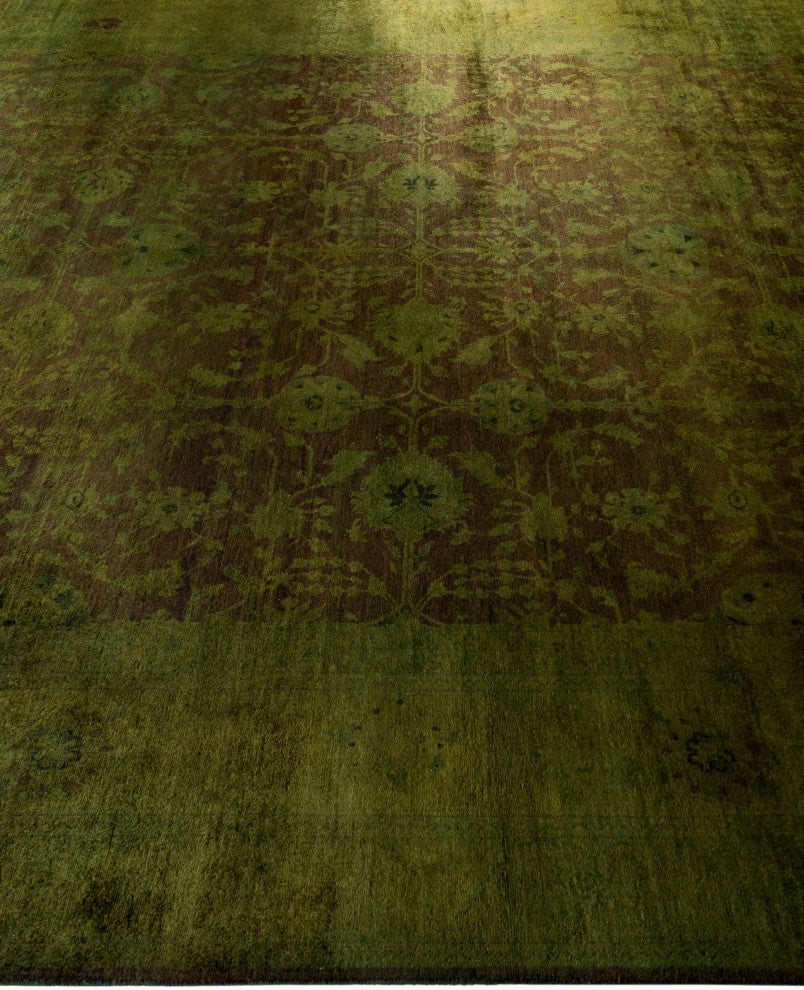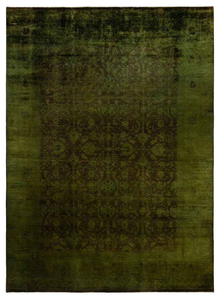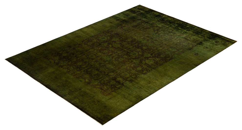 Overdyed One-of-a-Kind Hand-Knotted Area Rug Green, 9' 0" x 12' 1"