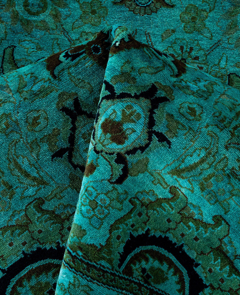 Overdyed area rugs blend vintage charm with bold, modern colors. This process involves taking distressed or faded traditional and antique rugs and saturating them with vibrant, monochromatic dye. This technique enhances the texture of the rugs while preserving the intricate patterns underneath. The result is a striking combination of old and new, with rich hues like deep blue, purple, or bright red. These rugs are perfect for eclectic and contemporary spaces, adding an artistic touch and serving as a dynamic focal point in any room.FeaturesHandcrafted by our team of experts in PakistanExceptional durability with 256 knots per inch constructionConstructed of 100% wool for a soft and cozy feelConvenient 9'' 1" x 9'' 1" dimensions offer the perfect balanced and inviting rug presenceNote that slight color variations may occur due to monitor differences. Embrace the individuality of each rug with minor variations in lengths, widths, and patternsDimensions:Area RugLength: 109 inchesWe believe that a beautiful room starts from the ground up. That is what inspired our founders to start selling hand-knotted rugs over 40 years ago. Since then, our passion for well-designed, impeccably hand-made rugs has never wavered.Experience - With more than 40 years in the rug business, our knowledge of premium hand-knotted rugs is exceptional.Quality - Our focus is on hand-knotted rugs and only hand-knotted rugs. At a minimum, it takes months to complete each rug by hand - that level of workmanship means our rugs are made to last.Variety - Our selection includes styles, sizes, and colors for every space and taste.