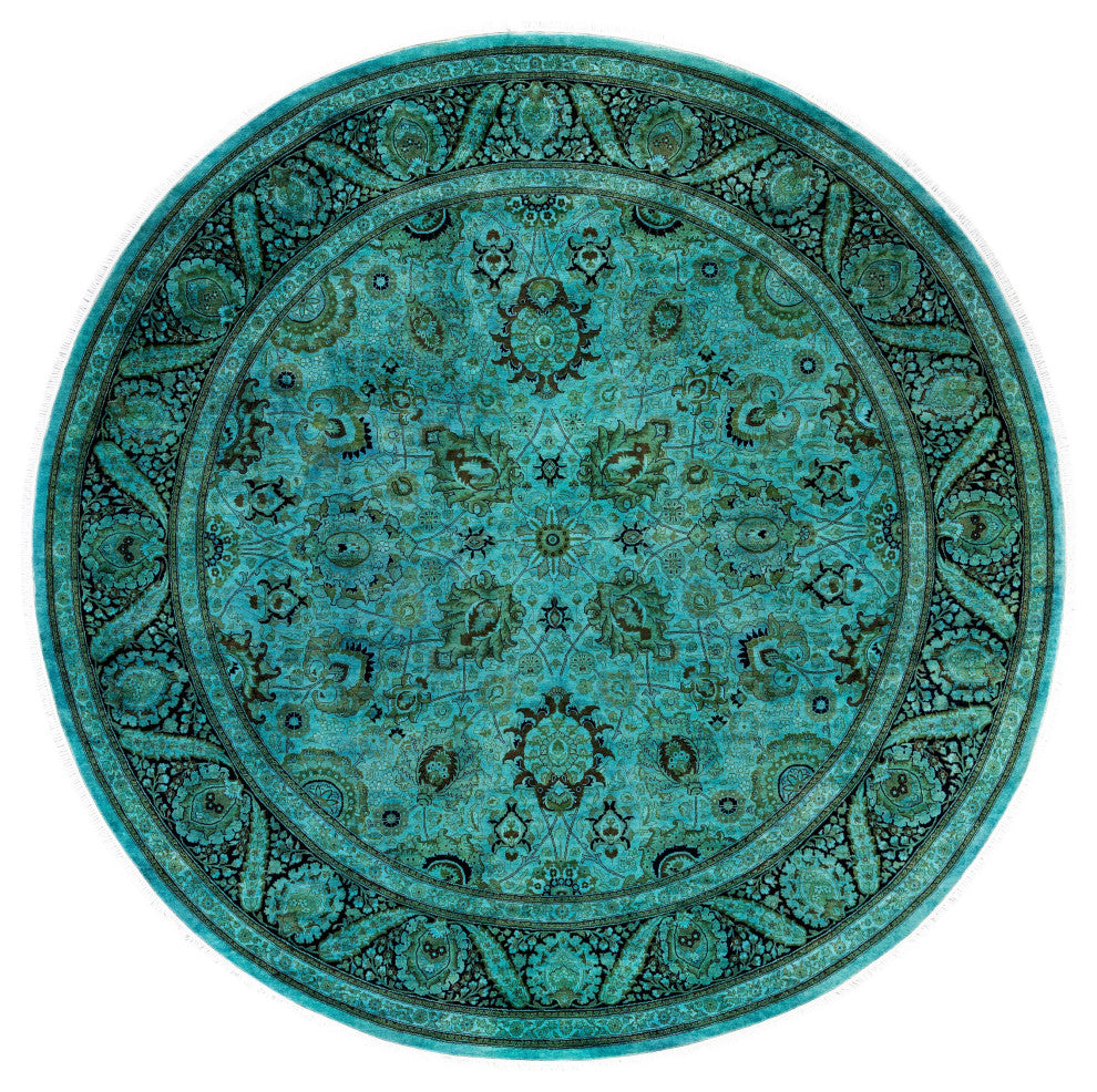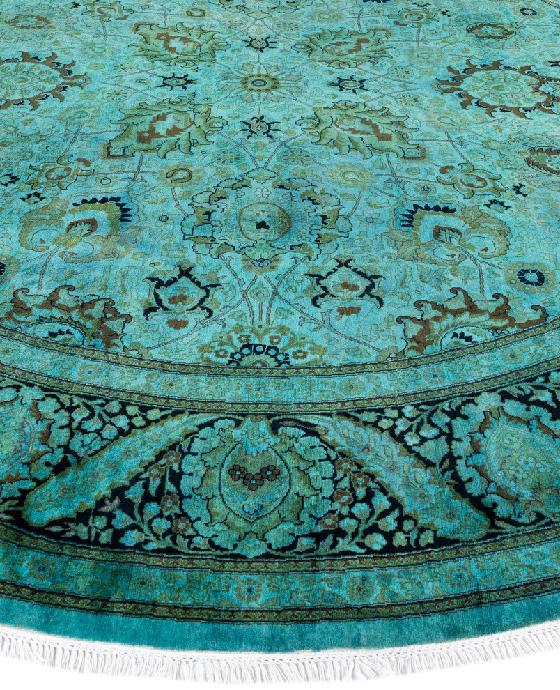 Overdyed One-of-a-Kind Hand-Knotted Area Rug Green, 9' 1" x 9' 1"