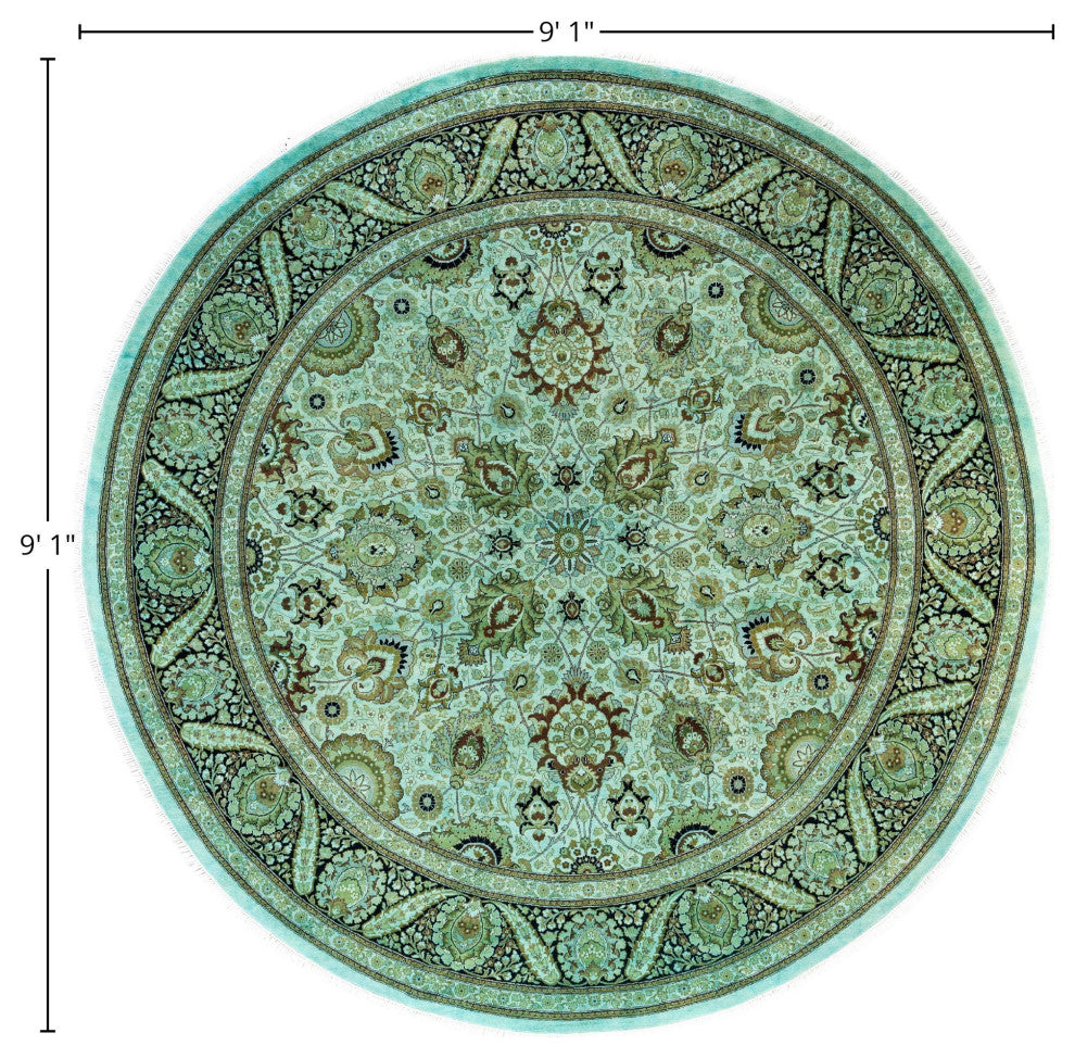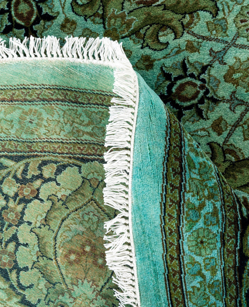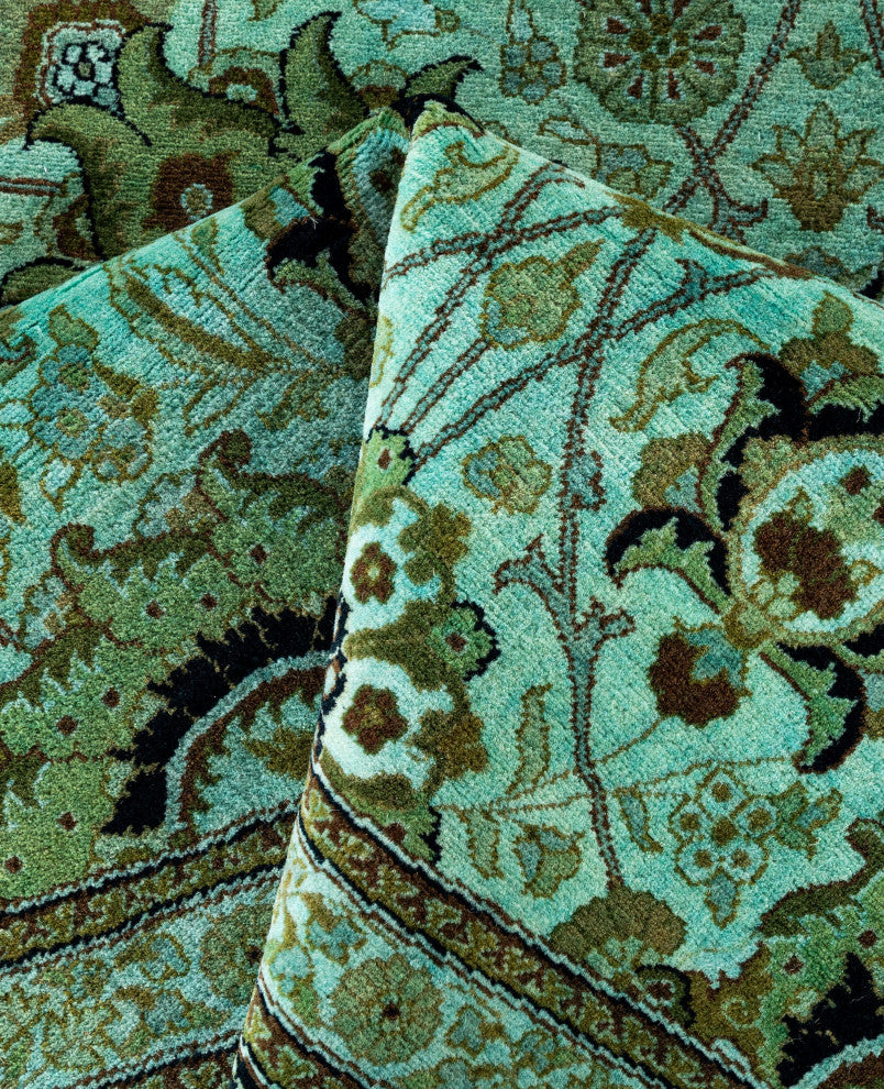 Overdyed One-of-a-Kind Hand-Knotted Area Rug Green, 9' 1" x 9' 1"