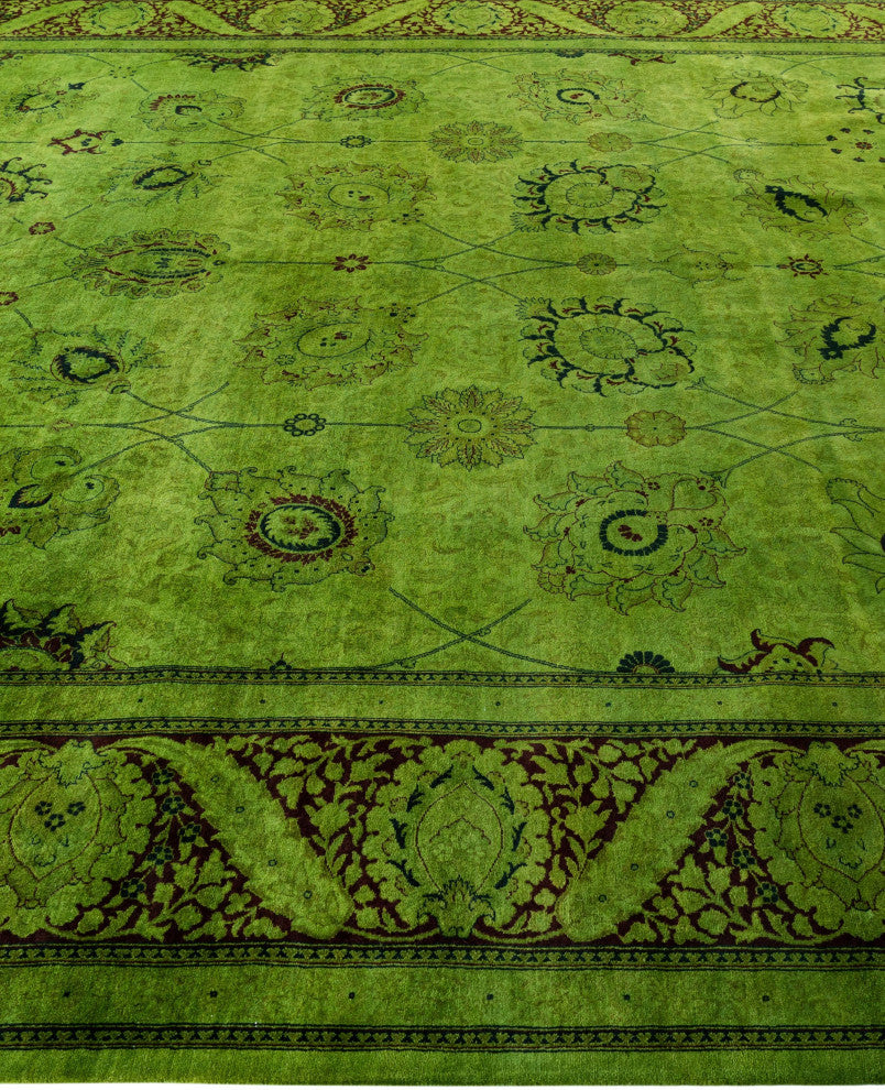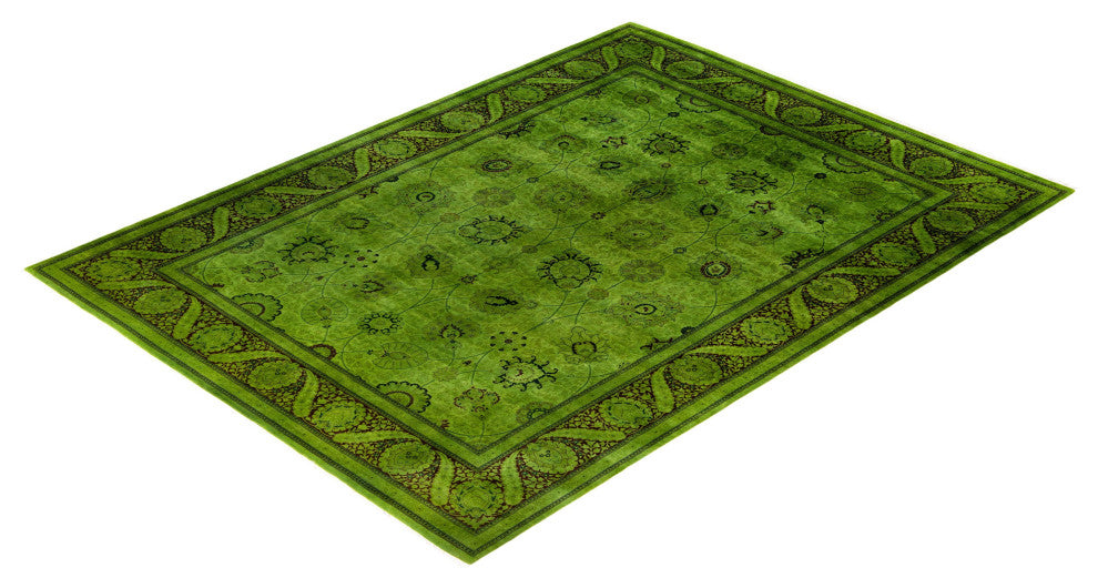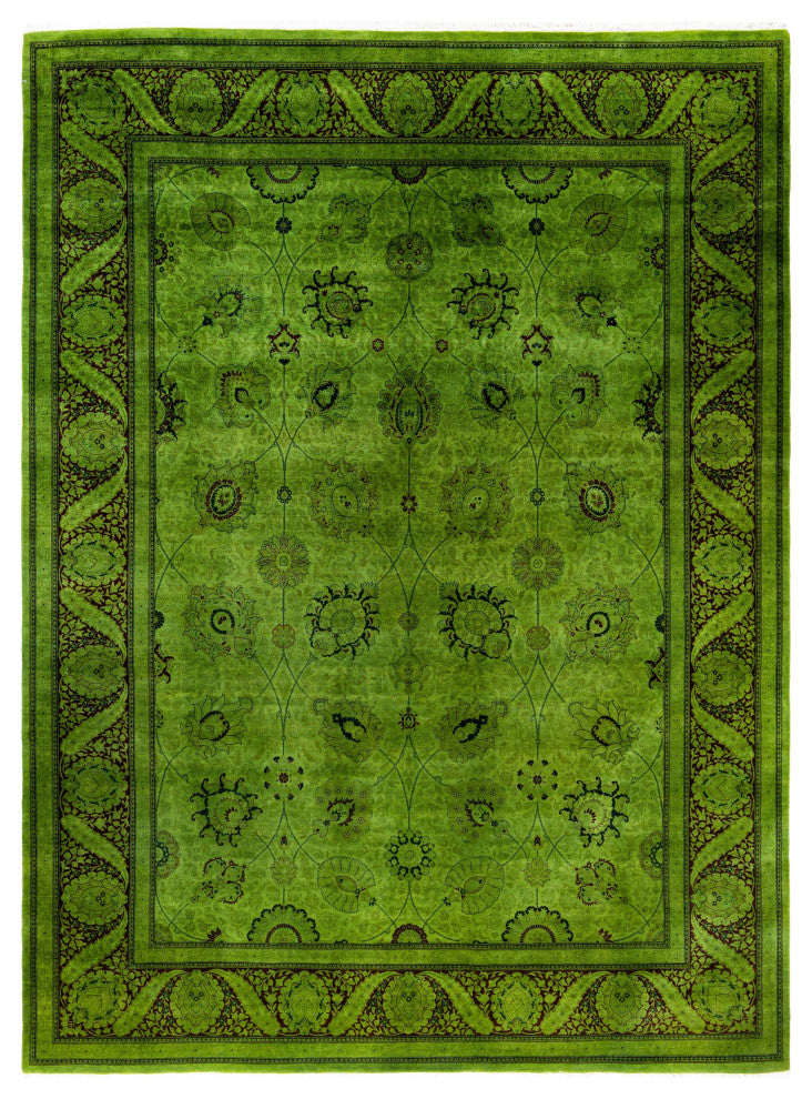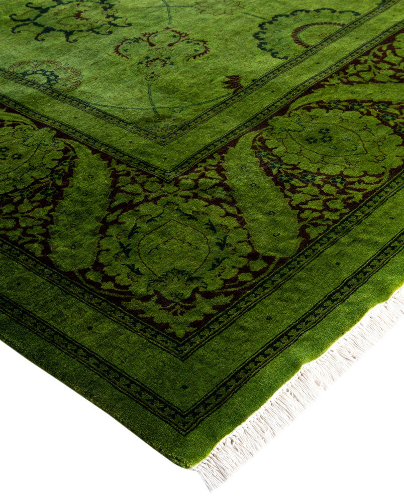 Overdyed One-of-a-Kind Hand-Knotted Area Rug Green, 9' 4" x 12' 2"