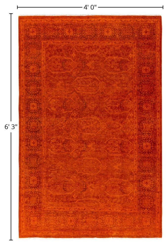Overdyed One-of-a-Kind Hand-Knotted Area Rug Orange, 4' 0" x 6' 3"