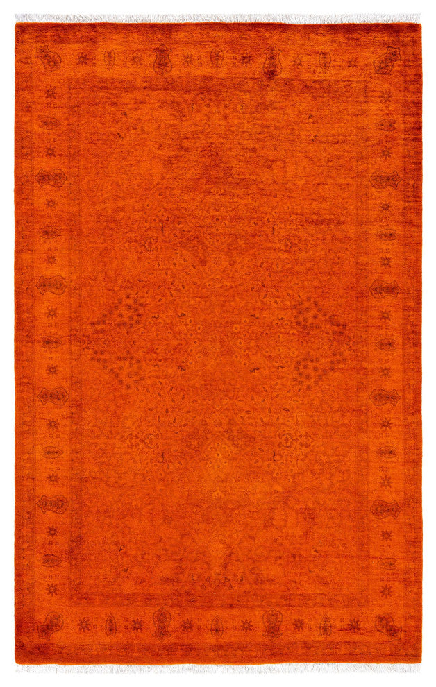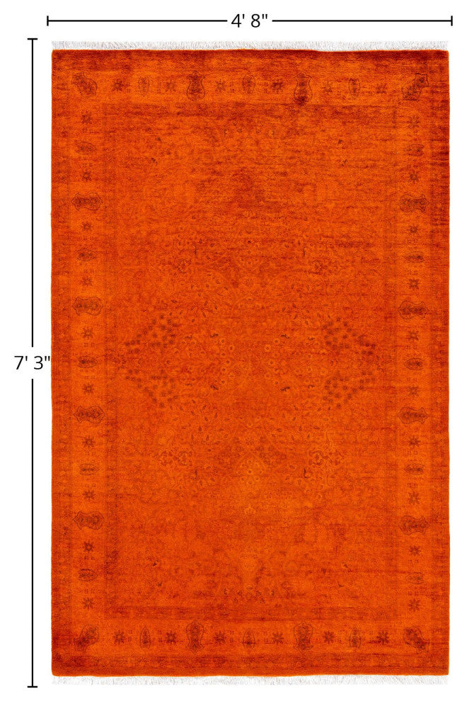 Overdyed One-of-a-Kind Hand-Knotted Area Rug Orange, 4' 8" x 7' 3"