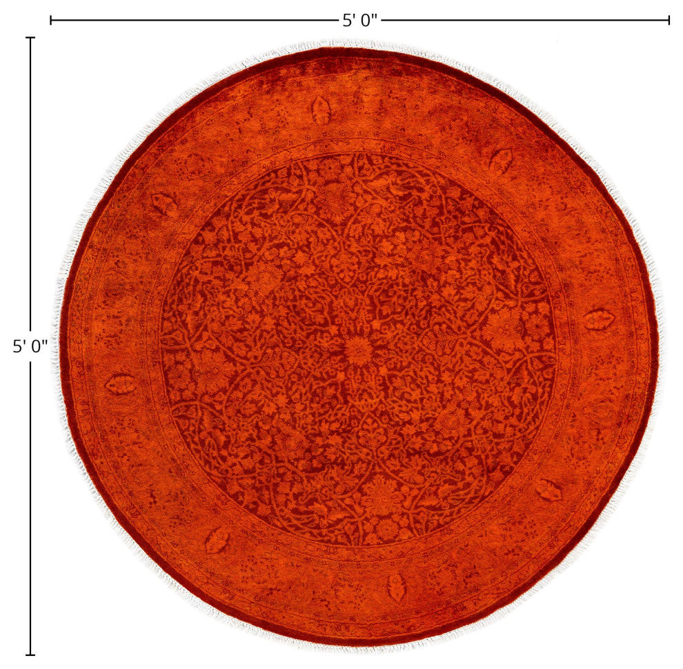Overdyed One-of-a-Kind Hand-Knotted Area Rug Orange, 5' 0" x 5' 0"