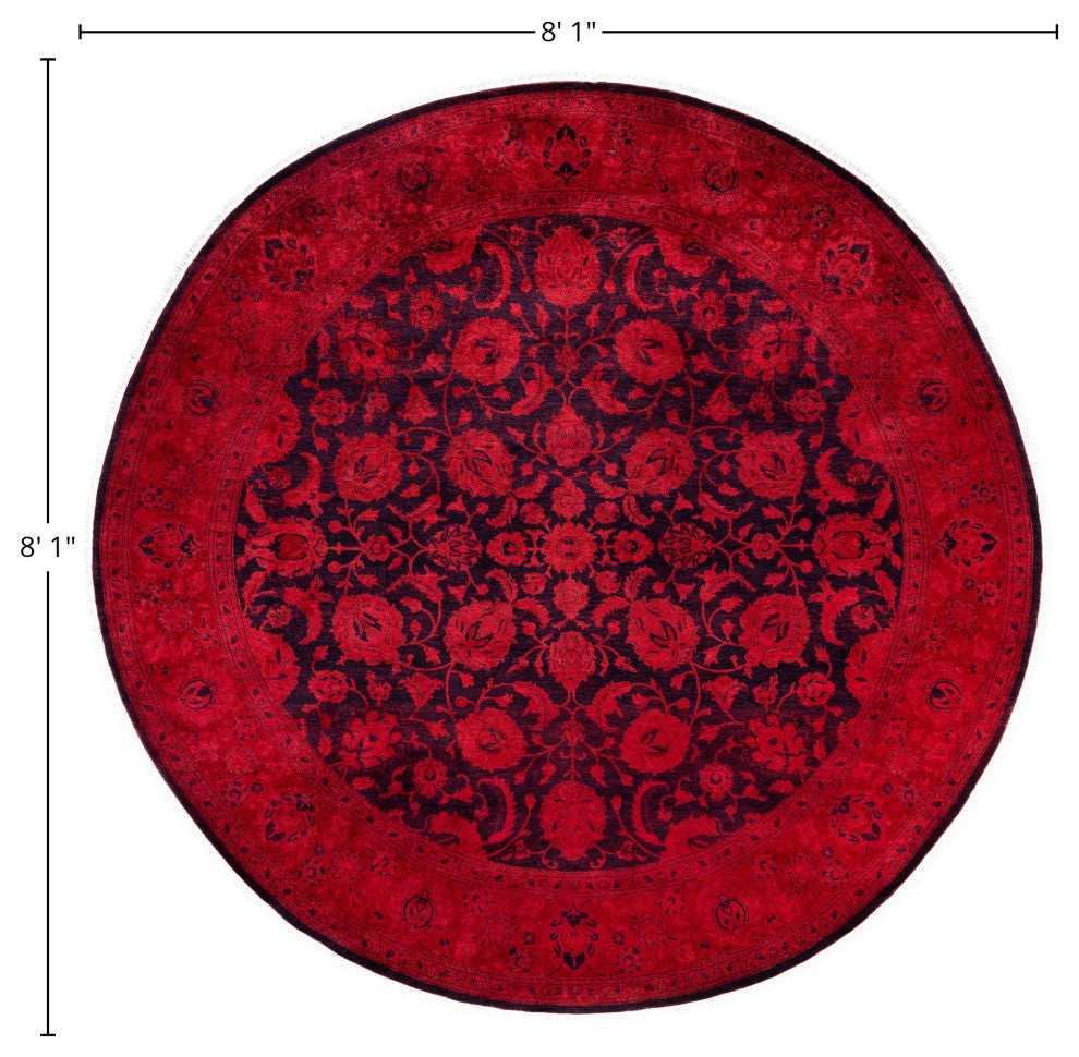 Overdyed area rugs blend vintage charm with bold, modern colors. This process involves taking distressed or faded traditional and antique rugs and saturating them with vibrant, monochromatic dye. This technique enhances the texture of the rugs while preserving the intricate patterns underneath. The result is a striking combination of old and new, with rich hues like deep blue, purple, or bright red. These rugs are perfect for eclectic and contemporary spaces, adding an artistic touch and serving as a dynamic focal point in any room.FeaturesHandcrafted by our team of experts in PakistanExceptional durability with 256 knots per inch constructionConstructed of 100% wool for a soft and cozy feelConvenient 8'' 1" x 8'' 1" dimensions offer the perfect balanced and inviting rug presenceNote that slight color variations may occur due to monitor differences. Embrace the individuality of each rug with minor variations in lengths, widths, and patternsDimensions:Area RugLength: 97 inchesWe believe that a beautiful room starts from the ground up. That is what inspired our founders to start selling hand-knotted rugs over 40 years ago. Since then, our passion for well-designed, impeccably hand-made rugs has never wavered.Experience - With more than 40 years in the rug business, our knowledge of premium hand-knotted rugs is exceptional.Quality - Our focus is on hand-knotted rugs and only hand-knotted rugs. At a minimum, it takes months to complete each rug by hand - that level of workmanship means our rugs are made to last.Variety - Our selection includes styles, sizes, and colors for every space and taste.