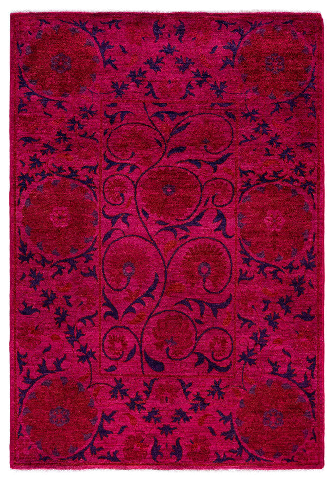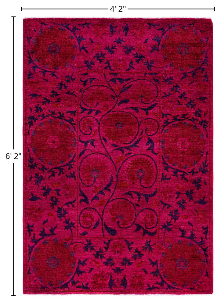 Overdyed One-of-a-Kind Hand-Knotted Area Rug Pink, 4' 2" x 6' 2"