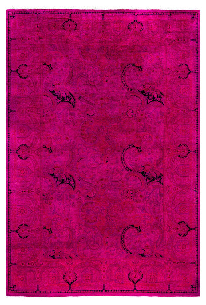 Overdyed area rugs blend vintage charm with bold, modern colors. This process involves taking distressed or faded traditional and antique rugs and saturating them with vibrant, monochromatic dye. This technique enhances the texture of the rugs while preserving the intricate patterns underneath. The result is a striking combination of old and new, with rich hues like deep blue, purple, or bright red. These rugs are perfect for eclectic and contemporary spaces, adding an artistic touch and serving as a dynamic focal point in any room.FeaturesHandcrafted by our team of experts in PakistanExceptional durability with 256 knots per inch constructionConstructed of 100% wool for a soft and cozy feelConvenient 6'' 1" x 9'' 0" dimensions offer the perfect balanced and inviting rug presenceNote that slight color variations may occur due to monitor differences. Embrace the individuality of each rug with minor variations in lengths, widths, and patternsDimensions:Area RugLength: 108 inchesWe believe that a beautiful room starts from the ground up. That is what inspired our founders to start selling hand-knotted rugs over 40 years ago. Since then, our passion for well-designed, impeccably hand-made rugs has never wavered.Experience - With more than 40 years in the rug business, our knowledge of premium hand-knotted rugs is exceptional.Quality - Our focus is on hand-knotted rugs and only hand-knotted rugs. At a minimum, it takes months to complete each rug by hand - that level of workmanship means our rugs are made to last.Variety - Our selection includes styles, sizes, and colors for every space and taste.