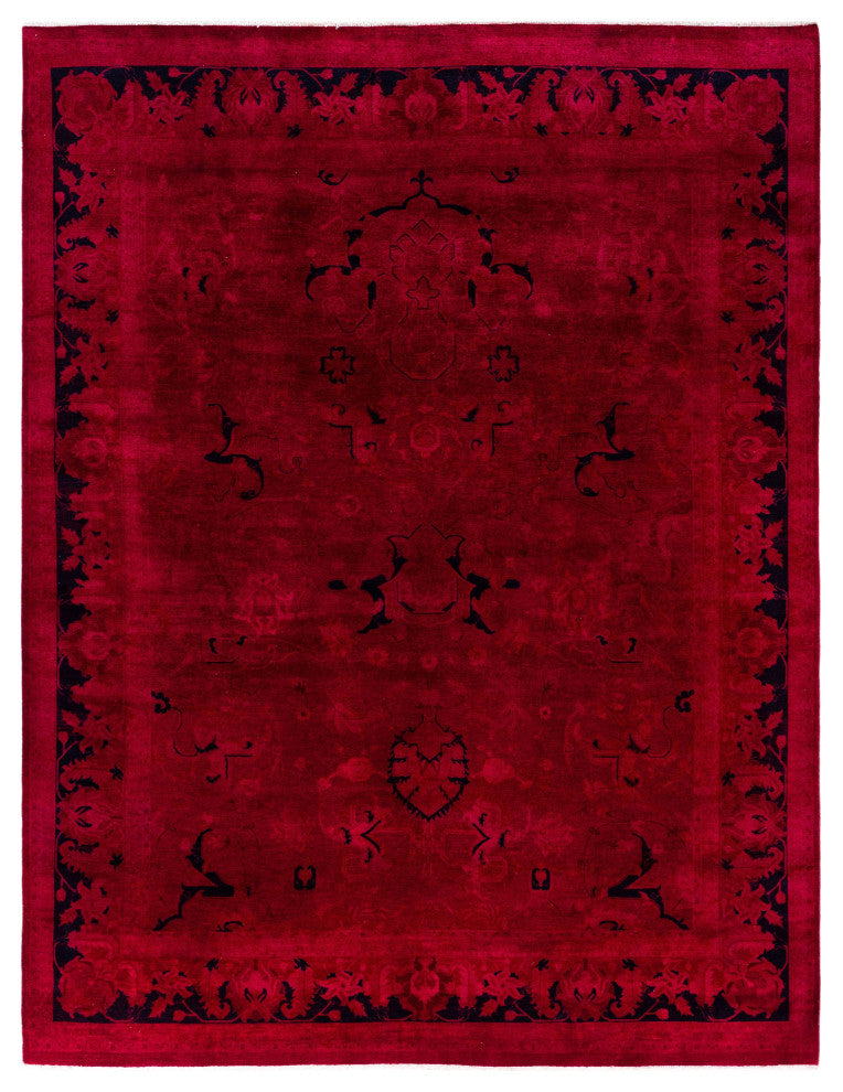 Overdyed area rugs blend vintage charm with bold, modern colors. This process involves taking distressed or faded traditional and antique rugs and saturating them with vibrant, monochromatic dye. This technique enhances the texture of the rugs while preserving the intricate patterns underneath. The result is a striking combination of old and new, with rich hues like deep blue, purple, or bright red. These rugs are perfect for eclectic and contemporary spaces, adding an artistic touch and serving as a dynamic focal point in any room.FeaturesHandcrafted by our team of experts in PakistanExceptional durability with 256 knots per inch constructionConstructed of 100% wool for a soft and cozy feelConvenient 8'' 0" x 10'' 5" dimensions offer the perfect balanced and inviting rug presenceNote that slight color variations may occur due to monitor differences. Embrace the individuality of each rug with minor variations in lengths, widths, and patternsDimensions:Area RugLength: 125 inchesWe believe that a beautiful room starts from the ground up. That is what inspired our founders to start selling hand-knotted rugs over 40 years ago. Since then, our passion for well-designed, impeccably hand-made rugs has never wavered.Experience - With more than 40 years in the rug business, our knowledge of premium hand-knotted rugs is exceptional.Quality - Our focus is on hand-knotted rugs and only hand-knotted rugs. At a minimum, it takes months to complete each rug by hand - that level of workmanship means our rugs are made to last.Variety - Our selection includes styles, sizes, and colors for every space and taste.